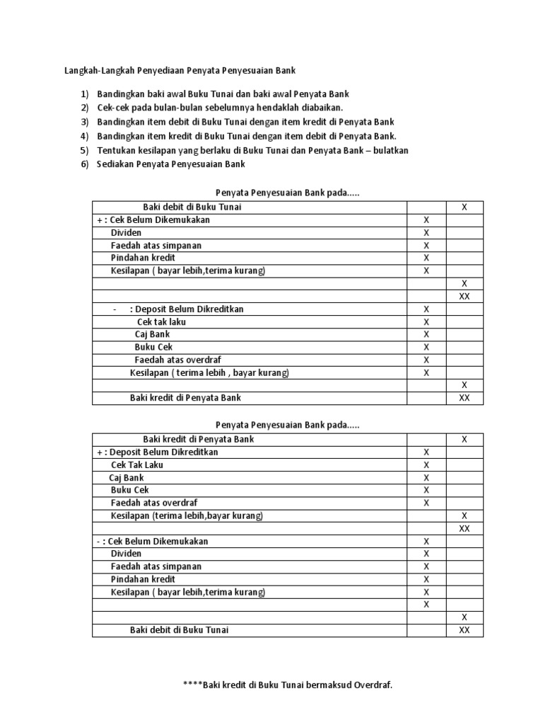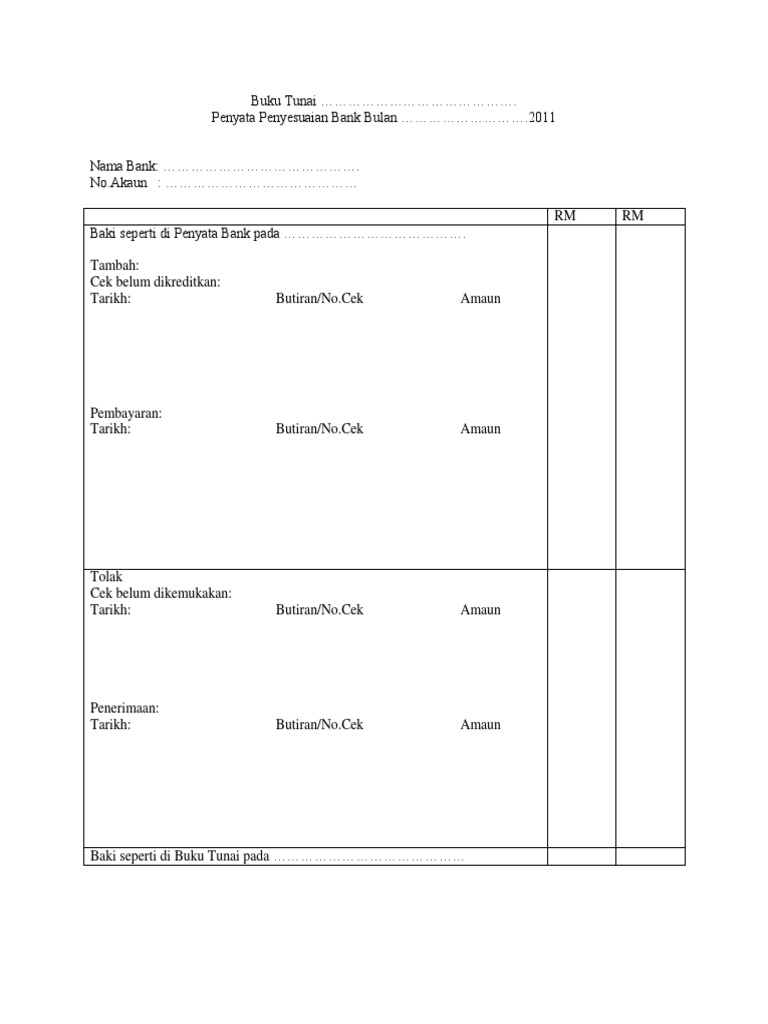Format Penyata Penyesuaian Bank Format Penyata Penyesuaian Bank Pengurusan Kewangan Perhatikan Penyata Penyesuaian Diatas Bermula Dengan Balance As Per Bank Statement Baki Pada Penyata Bank Add To My Workbooks 0