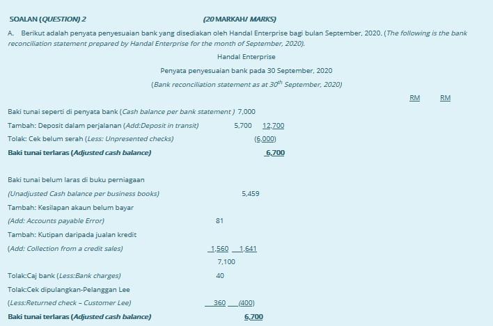 Soalan Question 2 20 Markah Marks A Berikut Chegg Com