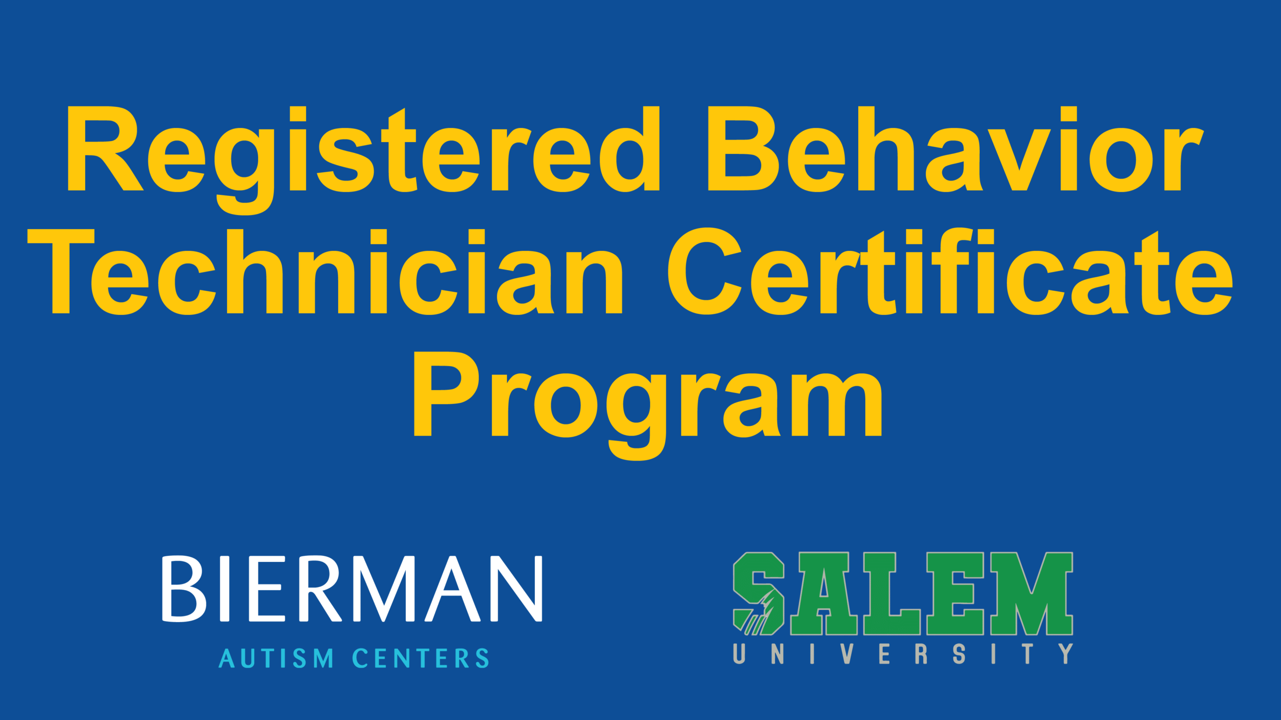 Bierman Autism Center And Salem University Behavior Technician Certification Bierman Autism Centers Autism Therapy For Children